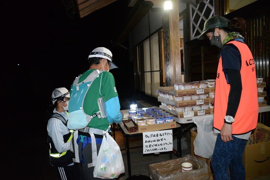 活動中の食事(エイド提供品。紙コップがございませんのでマイカップを持参ください)