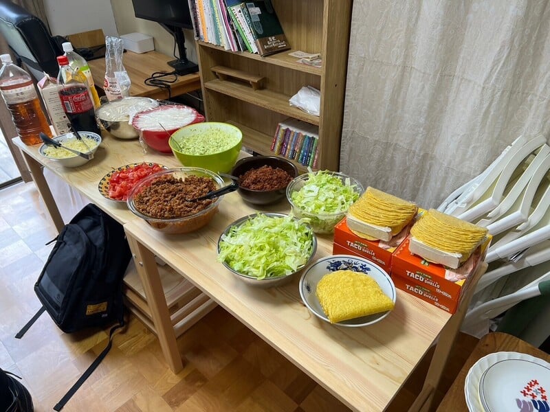 午前中に集まり調理や会場設営をします。参加者が集まってきたら、進行役や料理提供など役割分担してイベントを進めていきます。