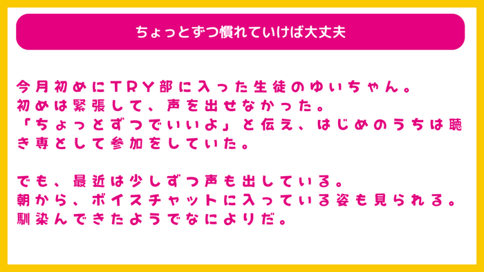 草津でおこなっている教室(TRY部)は、「みずからガンバるようになるところ」