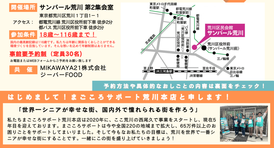 この募集の受入企業「MIKAWAYA21株式会社(まごころサポート荒川本店)」をフォローして、