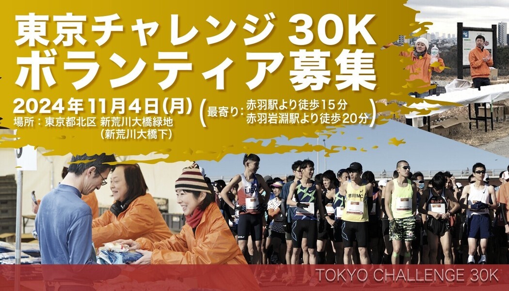 - 【11/4マラソン練習会ボランティア募集】東京チャレンジ30Kボランティア募集!