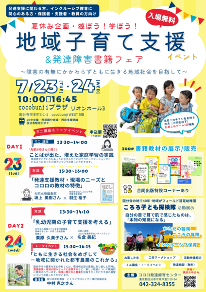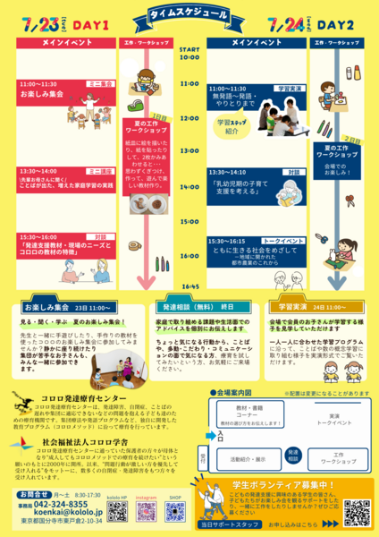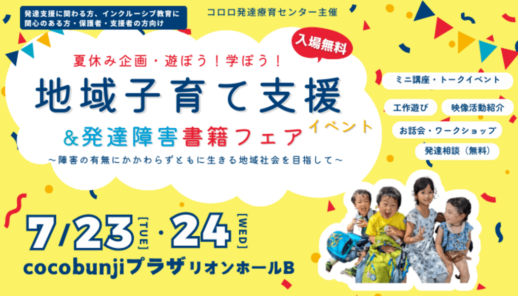 この夏、コロロの療育や活動をより広く知ってもらうとともに、地域の様々な方をお招きしてトークイベントやミニ講座・お子様のためのワークショップなどを盛り込んだイベントを2日間にわたって開催することになりました。
