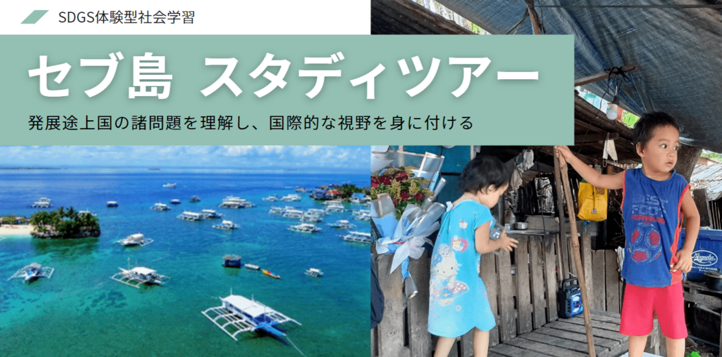 世界中から観光客が訪れるリゾート地でありながら、発展途上国として環境問題・貧困問題を抱える「セブ島」を舞台に、社会問題に目を向け国際的な視野を身に着けるスタディツアーです。