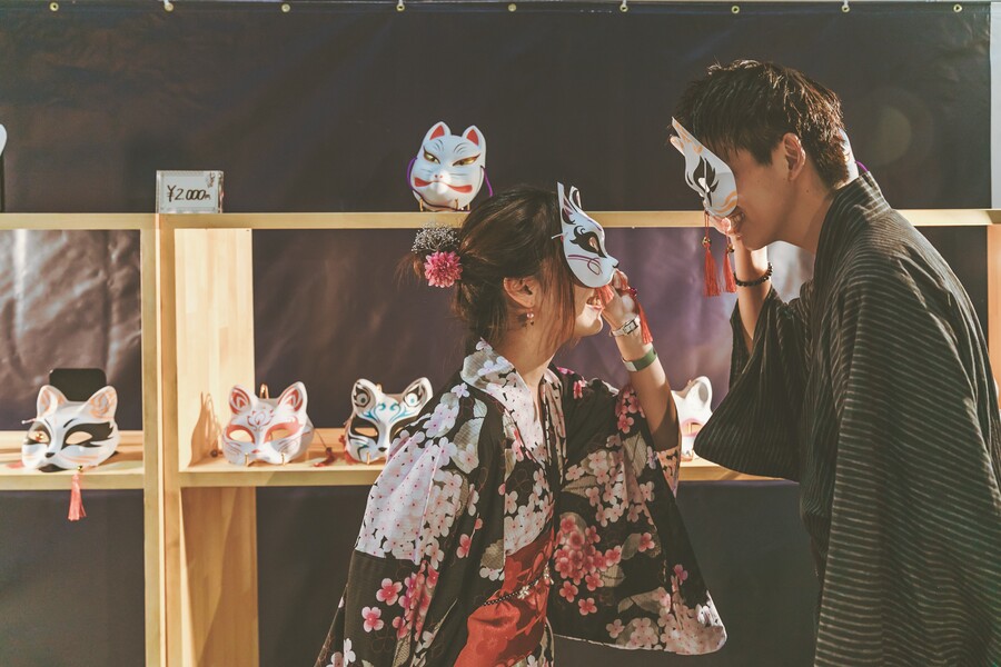 会場には、京都ならではの和の雰囲気が広がり、夏ならではのフードやドリンク、縁日が並んだ。