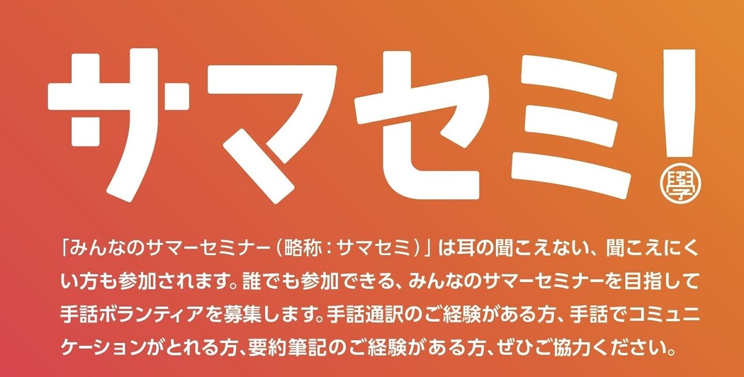 - 【手話ボラ】8/3.4開催「サマセミ2024 in尼崎」手話ボランティア募集!