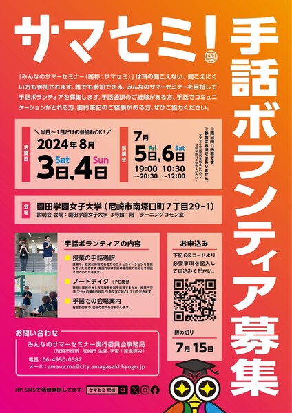 【手話ボラ】8/3.4開催「サマセミ2024 in尼崎」手話ボランティア募集!