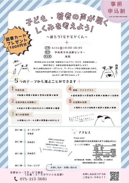 【対 象】京都市内在住、もしくは通勤・通学先のある13歳から30歳までの方