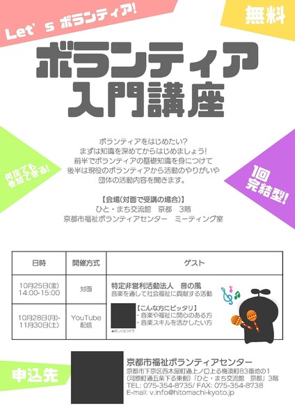 【11月30日(土)まで】ボランティア入門講座【ゲスト: 音の風】