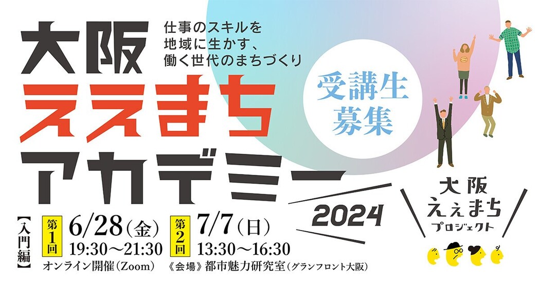 「大阪ええまちアカデミー」は、現役で働く世代を対象に、地域活動プロジェクトの立ち上げや運営などが学べる講座です。