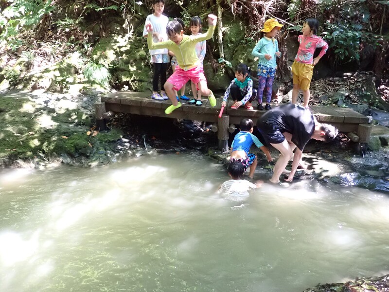 葉山の森戸川 or 前田川をどんどん上流に向かって 探検します。高いところから飛び込んだり、生き物 探しをしたり。外は暑くても森の中は涼しくて気持 ちいい。思いっきり川遊びを楽しもう!