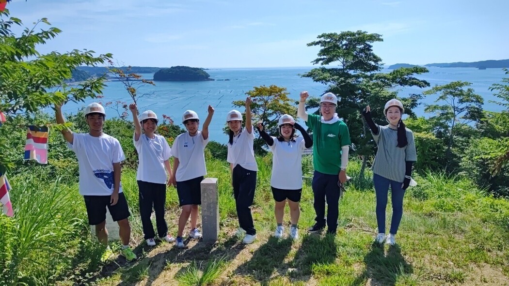 志津川湾の中央に位置する展望に優れた森を整備し、新たな慰霊と伝承の場所を創生する『海の見える命の森創り』は2016年にスタートしました。本企画は震災伝承と慰霊の場所そのものを『桜と海の絶景』として計画的に創生することにより、震災伝承の補助をし、絶景が呼び込む交流人口の増加などを狙い企画いたしました。2018年度は3年目に入り、2017年度設立された南三陸ホテル観洋と南三陸町民有志で構成された海の見える命の森実行委員会が組織されました。観光客の方や、子ども達の環境学習の場としても気軽に訪れられる海の見える森とし、散策路のコースを整備拡充には尽力できました。更に今年度はたくさんの人が集まるために必要不可欠な拠点施設、自然にやさしいバイオトイレの設置、地元素材に拘った天然小屋等の拠点施設の整備をし利便性を高めつつも観光エコの推進も視野にいれて活動を展開します。