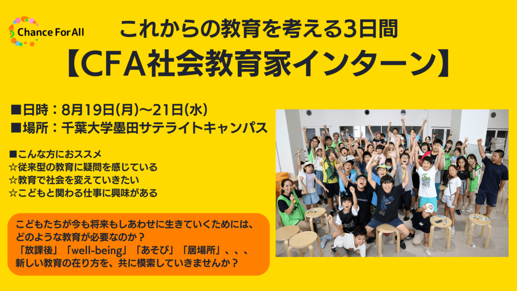 - 【募集終了】これからの教育を考える3日間~CFA社会教育家インターン~