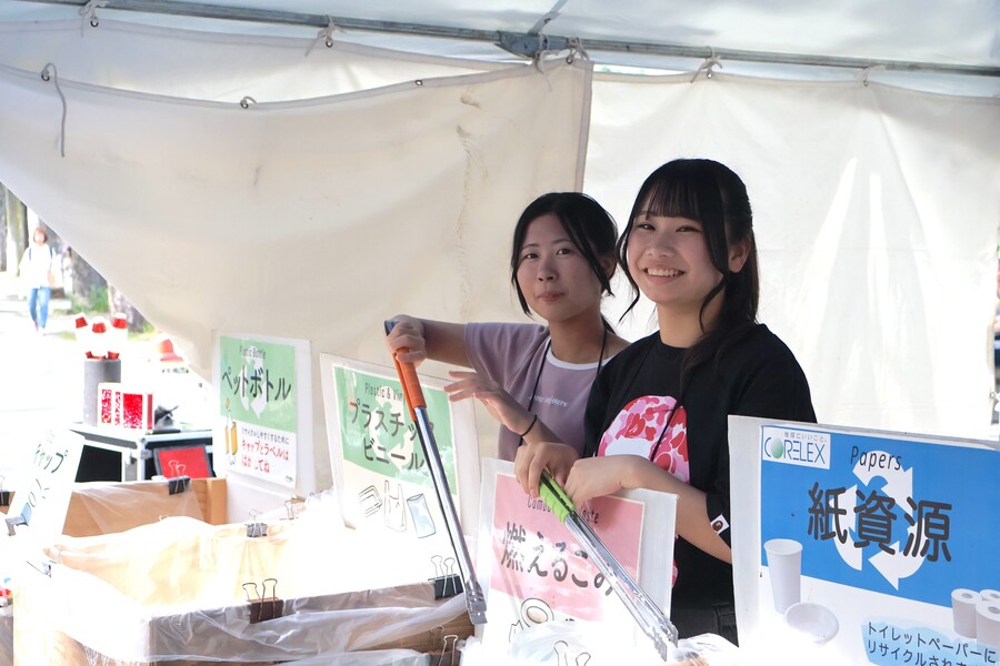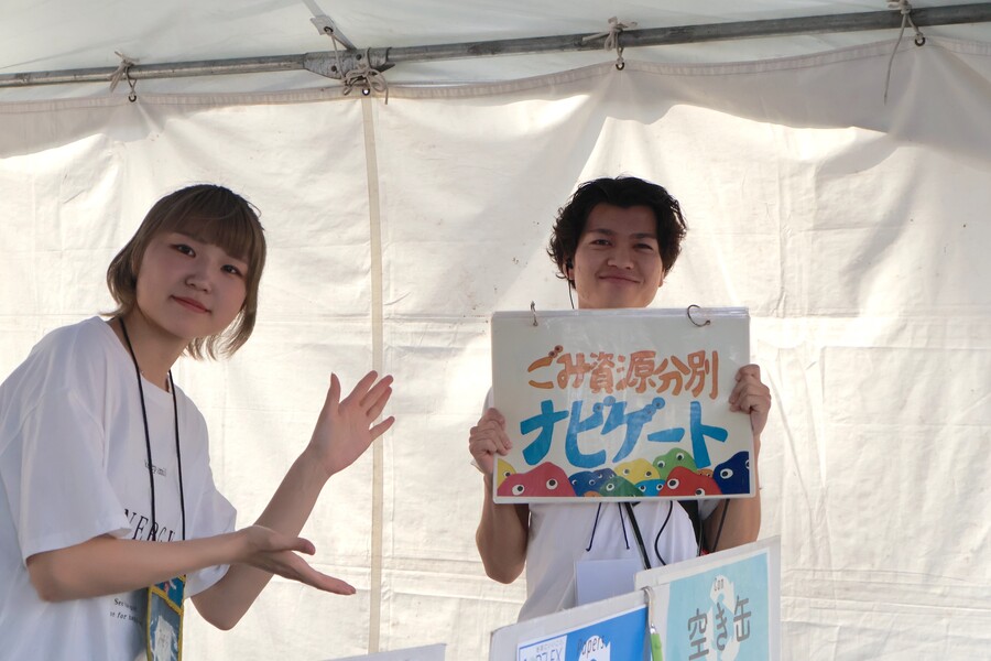来場者が自分の手でごみ資源を分別できるようにする "ごみ資源の分別ナビゲート" や、ごみの根本削減に取り組む "リユースカップ・食器"の導入など、イベントの環境負荷を下げるための活動をボランティアと一緒に運営しています。