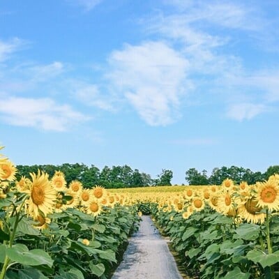200万本のひまわりが咲き誇る国内最大級のひまわり畑があり、