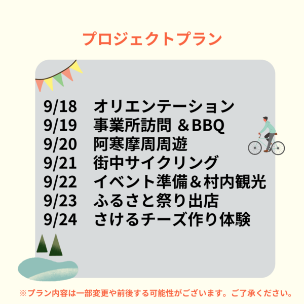 ※プラン内容は一部変更や前後する可能性がございます。ご了承ください。