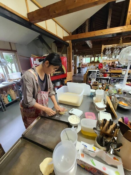 北海道といえばの大自然が広がる鶴居村を初めて訪れたときは、その自然の大きさに異国の地に来たかのように感じました。鶴居村の基幹産業が酪農ということで、いたるところが牧場で車での移動中たくさん牛を見かけました。山、空、動物、といった青と緑でいっぱいの風景は人工的なものがなく、都心での生活では味わえない開放感と癒しがありました。宿泊でお世話になるハートンツリーさんでは、サスティナビリティに対する志が高く、天然由来の食事と暮らしを徹底していました。ハートンツリーさんの下でボランティア活動をさせていただきながらも、持続可能な生活のあり方について考え、実践する場として、とても深い経験となりました。 |