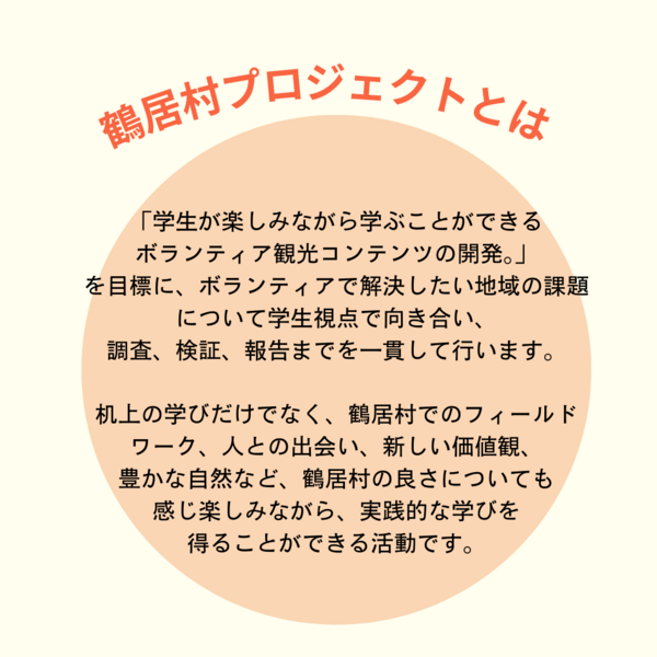 鶴居村プロジェクトのコンセプトは、「学生が楽しみながら学べるボランティア×観光ツアー」の開発です。
