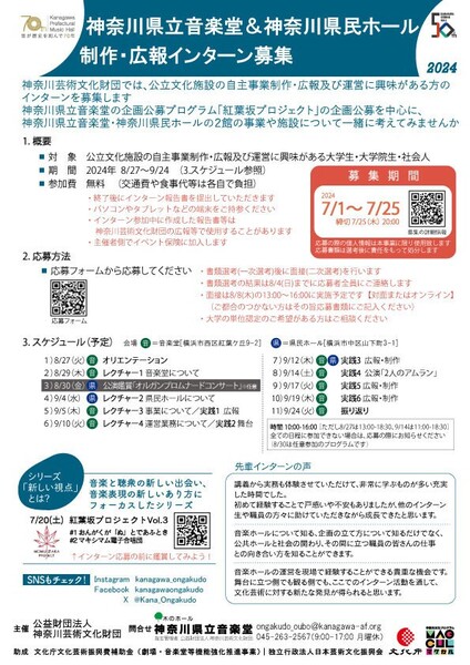 - <応募受付中!>神奈川県立音楽堂&神奈川県民ホール 制作・広報インターン