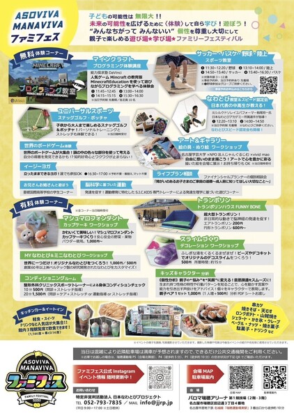小学生を対象とした「ASOVIVAMANAVIVAファミフェス」ボランティア募集