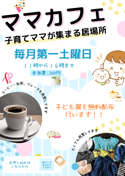 毎月第一日曜日に神戸市灘区の水道筋商店街で子育て中のママたちが集まるママカフェを開催します。そこでは飲食ができ(軽食)子ども服の無料配布も行います。そこでお手伝いをしてくれるボランティアを募集します