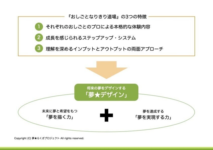 「夢」と「希望」という無限の可能性を秘めたこどもたちに、さまざまなおしごと体験の機会を提供することで、次世代への「夢★デザイン」を応援するプロジェクトです。