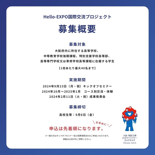 - 大阪府内高校生等大募集!万博を契機に留学生と世界の課題に挑むプロジェクト!