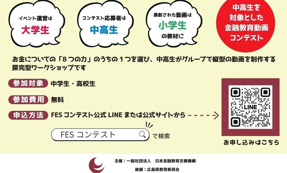 - 広島県 ボランティア型ワークショップ♪金融ショート動画制作をする中高生募集!