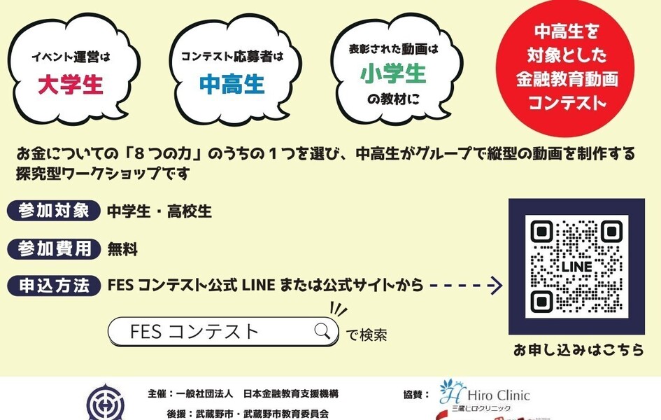 FESコンテスト(Financial Education Support Contest for Student )は、小学生のための金融教育動画を中高生が制作し、そのクオリティを競うコンテストです。