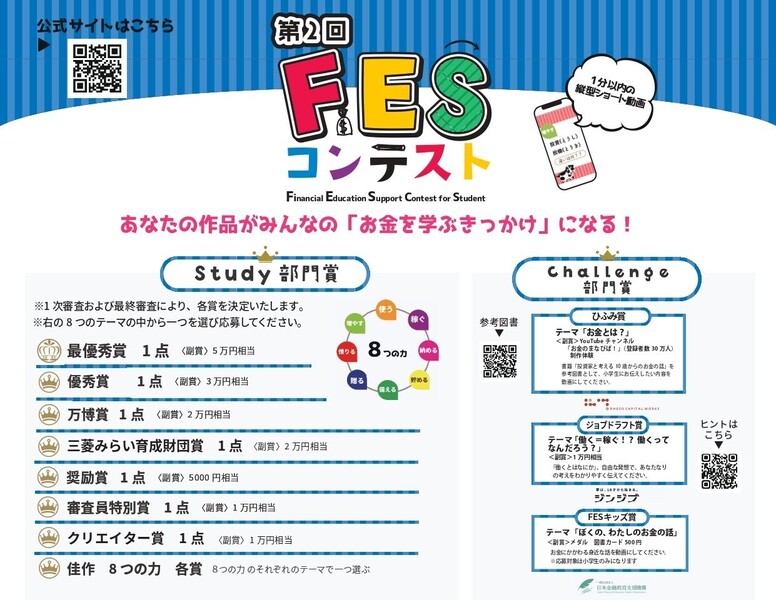 FESコンテスト(Financial Education Support Contest for Student )は、小学生のための金融教育動画を中高生が制作し、そのクオリティを競うコンテストです。