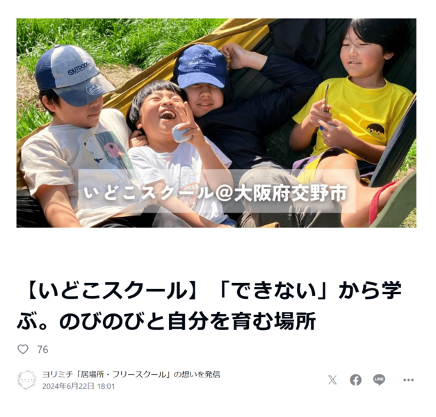私たちヨリミチは、「フリースクールや居場所活動」に取り組んでいる人たちにオンラインでインタビューを行い、記事として情報を発信しています。