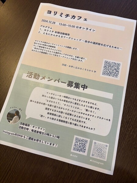 2024年4月から活動を始めた学生団体です。「様々な選択肢があること」を発信するために、「フリースクール」や「居場所支援活動」に取り組まれている方々への取材、記事の作成・発信を行います。