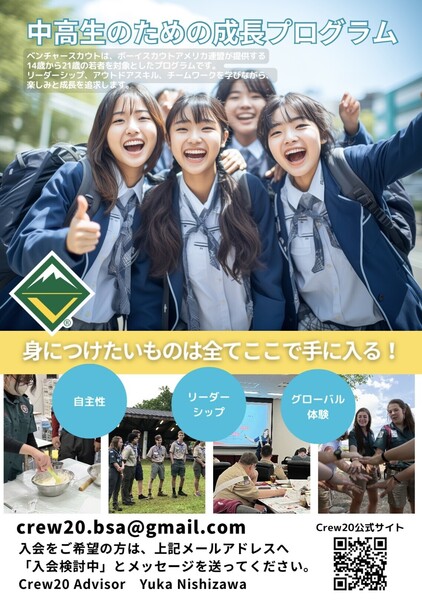 Crew20は東京メソニックセンターをCharter Organizationとし、東京都港区を中心に活動していますが、全国からの参加が可能です。