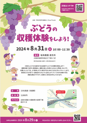 大阪ぶどうの名産地である柏原でぶどうの収穫を実施します! 収穫したぶどうをより美味しそうに販売するための工夫をレクチャーします!