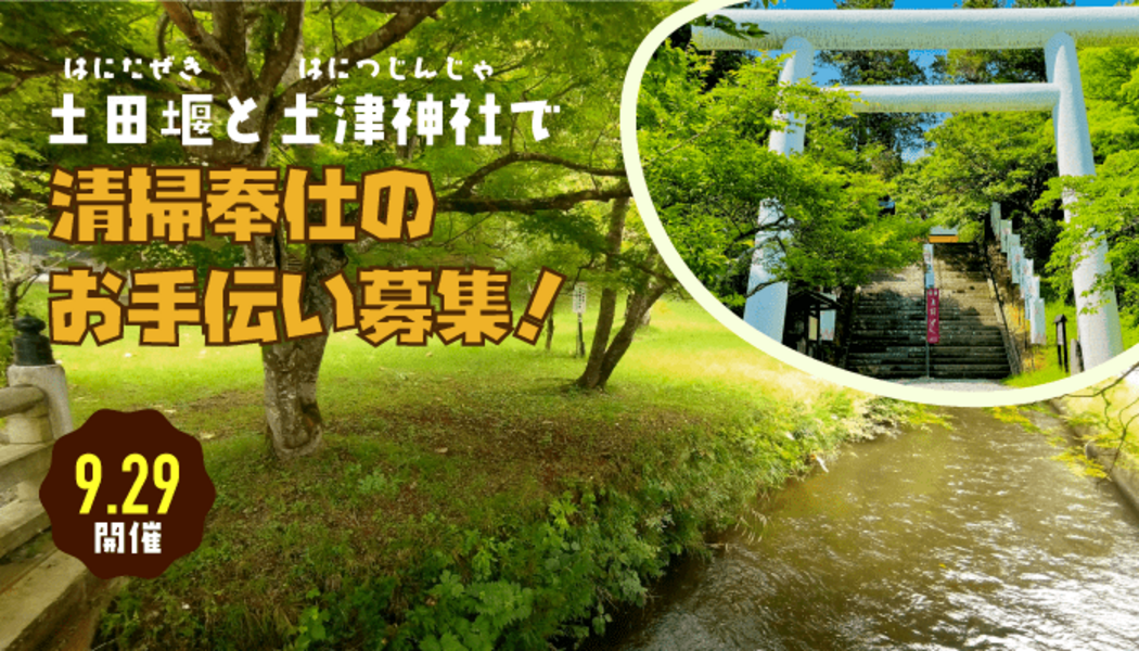 - 土田堰(はにたぜき)と土津神社(はにつじんじゃ)の 清掃奉仕のお手伝い募集!