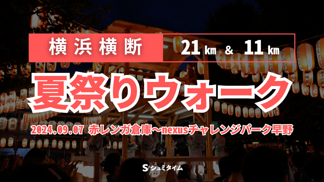 趣味を楽しむ大人のイベントSNS「シュミタイム」が主催する「横浜横断 夏祭りウォーク2024」のスタッフ募集です!赤レンガ倉庫~新横浜~あざみ野までのコース上・ゴール会場での運営業務をお願いします。