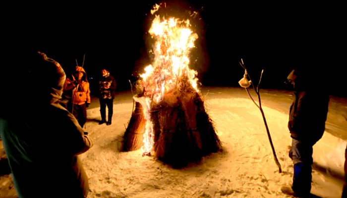 この歳の神の火にあたると、病気にならないと言われてます。また、この火で餅やスルメを焼いたものを家族で分けて食べるとその年は家内安全、無病息災で過ごすことができると伝えられています。