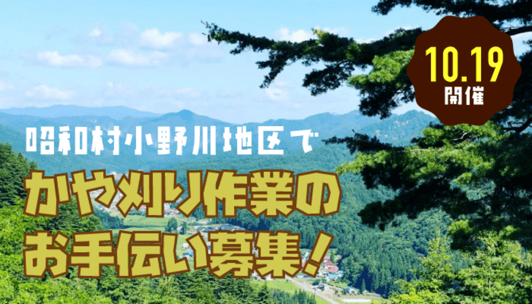 福島県昭和村で地域の伝統行事に使用するためのかや刈り作業と蕎麦会を開催します!美しい山村で、かや刈りやそば打ちを楽しみながら、地域の伝統に触れるチャンスです。お昼に振る舞われる美味しい蕎麦も魅力!