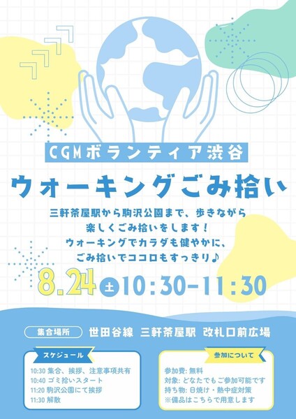 ★8/24(土) 10:30〜11:30@三軒茶屋駅集合 ウォーキングごみ拾い★