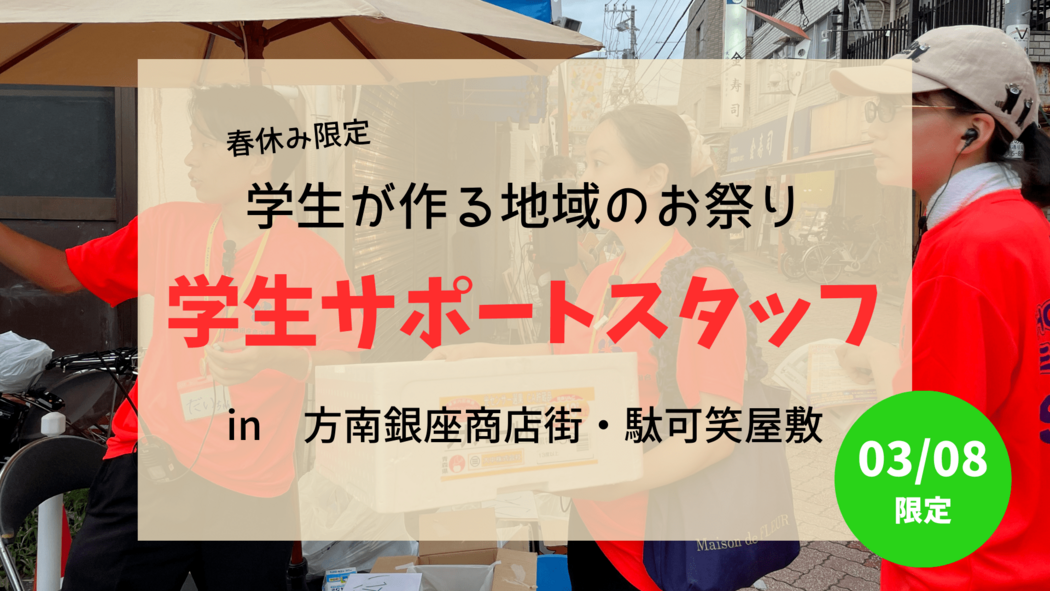 - 【1日OK】【商店街×まちづくり】学生発『わくわくまつり』サポートスタッフ募集!