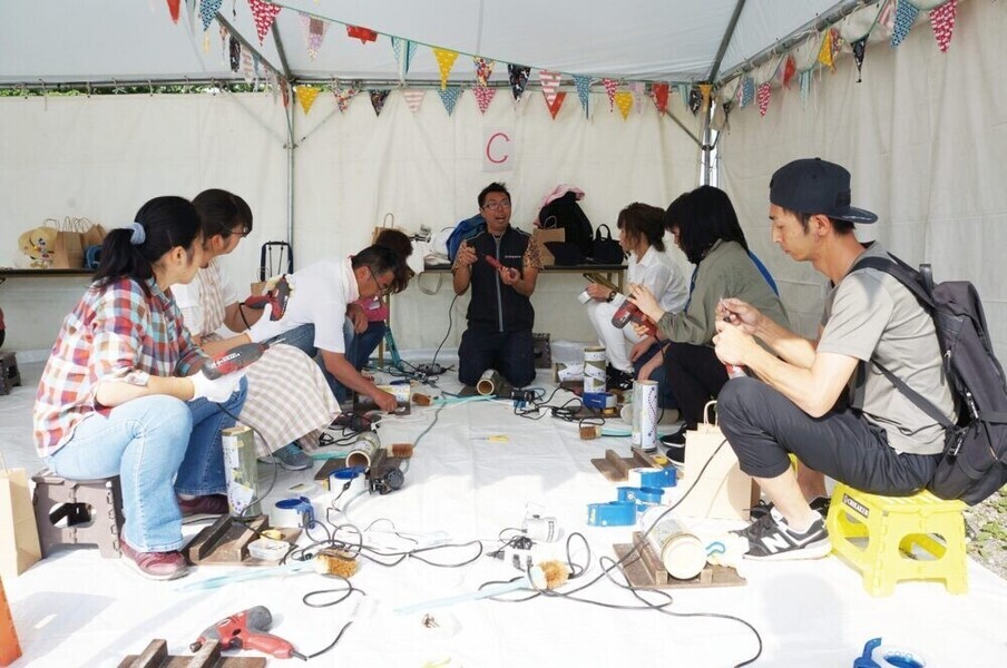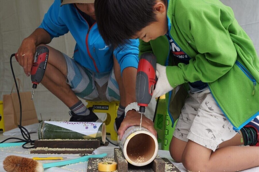 ボランティアで体験できるのは、竹への穴あけ作業・くみ上げ設置作業・撤去作業など。6日間の開催期間で、それぞれ都合のよい日程を選んで参加することができます。
