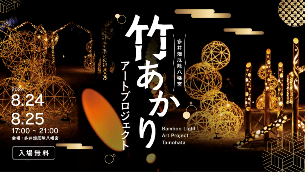 スケジュール ・20日(火)~22日(木):竹への穴あけ作業 ・23日(金):竹への穴あけ作業&くみ上げ設置作業 ・24日:くみ上げ設置作業 ・26日:撤去作業 ※イベントは2024年8月24日(土)~25日(日)17:00~21:00(予定)