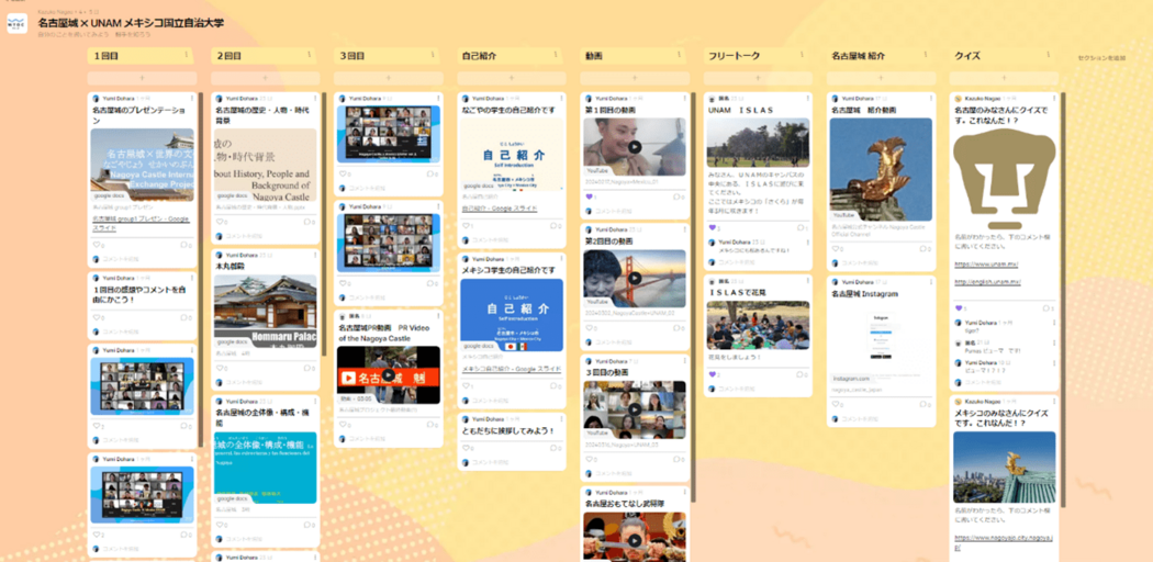 ・名古屋城のことをあまり知らなかったので、知るきっかけとなったのが良かったです。 UNAMの規模が大きいことは知っていたのですが、植物園やスタジアムなど様々な施設があることに驚きました。 ブレイクアウトルームでは、メキシコ/日本の好きな場所について話しました。メキシコの学生が「日本に政府の行っているプログラムで来たことがある」「日本にまた旅行で行きたい」と言っていたので、日本に対する関心が高いと感じました。