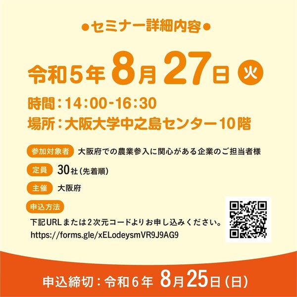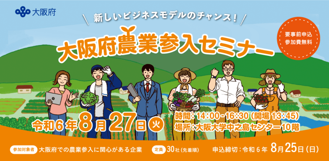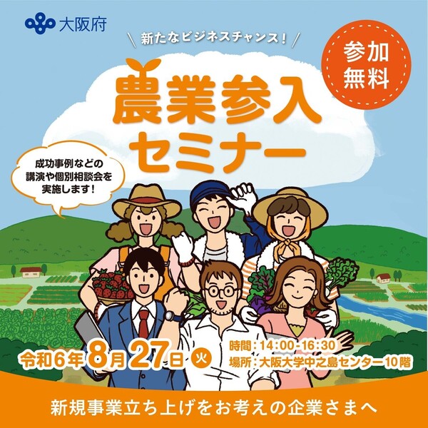 - 8月27日開催!大阪府主催の農業参入セミナー