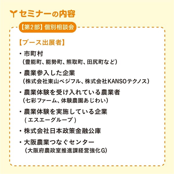 農業参入のプランが決まっている企業様や、農業参入に興味があるがどこから手をつければいいのか分からないという企業様にとっても大きなヒントを得られるチャンスです。