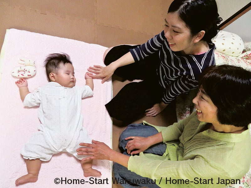 ホームスタートは50年前にイギリスで生まれ、22か国に広がった家庭訪問型の子育て支援の仕組み。地域の子育て経験者が、週に1回2時間程度、数回にわたって産前や乳幼児のいる家庭を訪問し、傾聴と協働をするボランティア活動。利用は無料。家事代行や託児は請け負わないが、母親などと一緒に話をしながら家事や育児、外出をし、親自身の心の安定と子育て意欲やスキルの向上につながる効果が実証されている。日本ではNPO法人ホームスタート・ジャパン(HSJ)がネットワークの中心になり、各地域の現場では地元のNPO法人、社会福祉法人、幼稚園・保育園、児童養護施設などが運営母体となり、家庭を訪問するボランティアを募集・養成し、ホームスタートの手法で家庭訪問を行う。充実した研修や詳細なマニュアルにより、訪問の質の担保がされているのが大きな特徴。