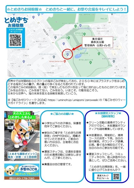 参加はどちらか1日で大丈夫!とめきちと一緒に、お祭り会場をキレイにしませんか?