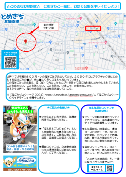 とめきちと一緒に、お祭り会場をキレイにしませんか?