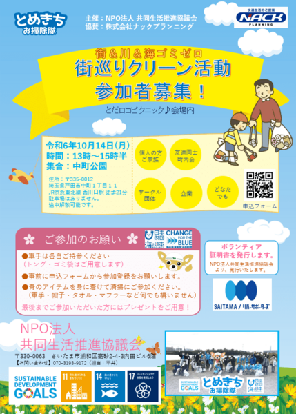 【募集】10/14 (月)「中町公園」清掃ボランティア(とめきちお掃除隊inとだロコピクニック)