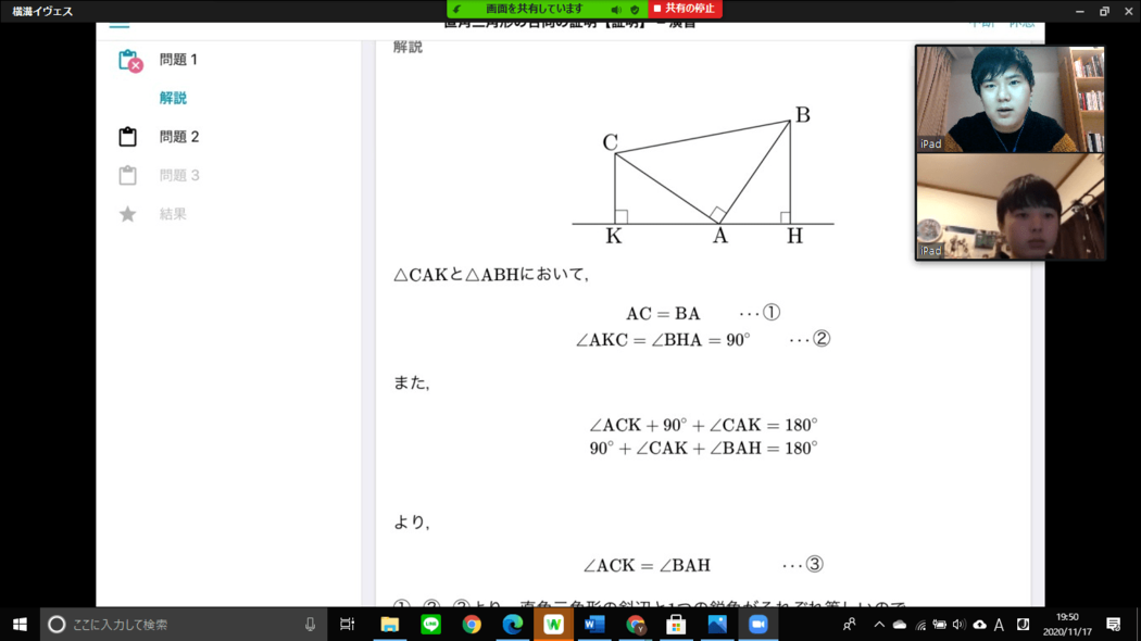 ・学習教科は基本的に数学と英語(教材はオンライン教材または学校のワーク、受験対策本など)