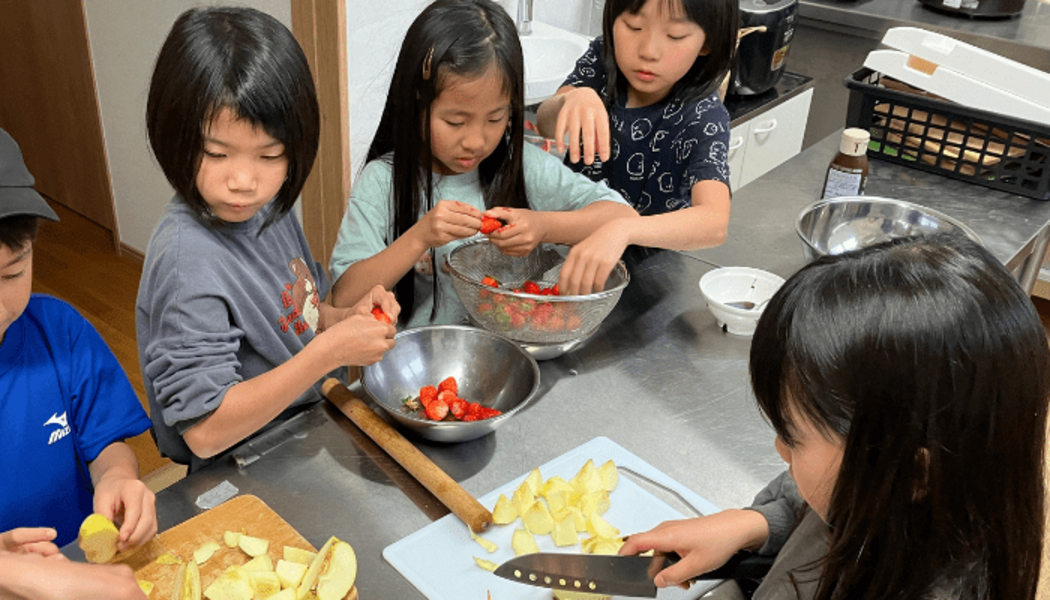 子どもたちが、自分たちでつくってみんなで食べる「子ども食堂」。食を通して、「やってみたい」を「やってみる」。家でもない学校でもない場所で関わり合い、互いに受け止め、受け止められて過ごせる放課後として週1回開催。子どもたちの経験を豊かにすることで「自分を大切に思う感覚(自己肯定感)が育つ」居場所としてスタート。